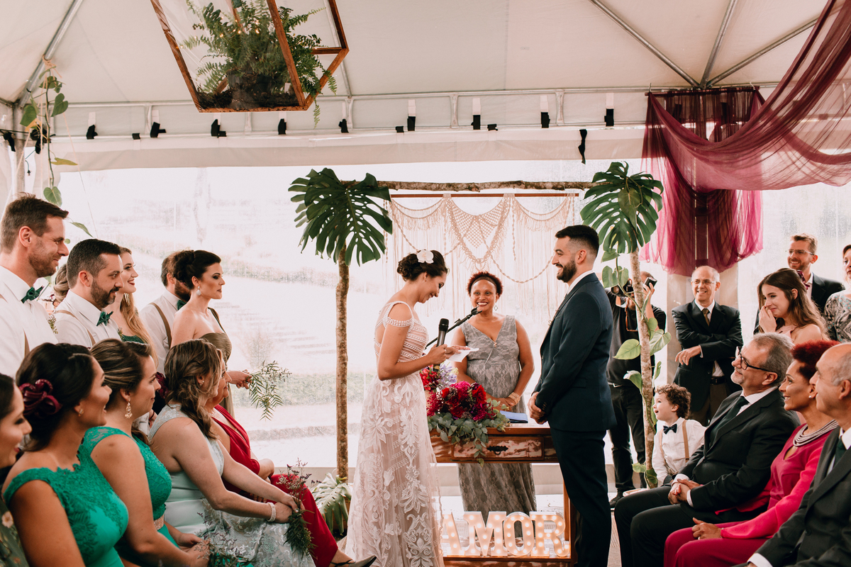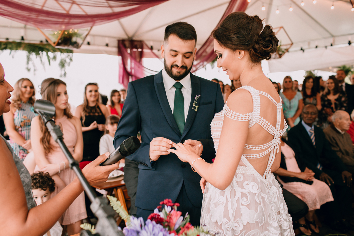 Casamento de dia realizado no Residencial Quatro Barras, região metropolitana de Curitiba. Cerimônia de casamento.